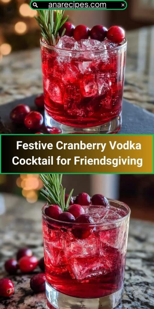This 5-Minute Festive Cranberry Vodka Cocktail is the ideal addition to any Friendsgiving gathering. Fast, flavorful, and beautifully seasonal, it strikes the perfect balance between tart, sweet, citrusy, and refreshing. Whether mixed for a crowd or enjoyed individually, it enhances the holiday atmosphere with ease. With its simple preparation, customizable sweetness, bright colors, and aromatic garnishes, this cocktail is sure to become a Friendsgiving favorite.