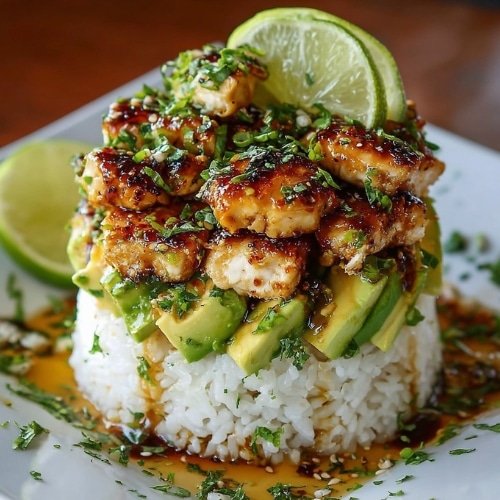 Honey Lime Chicken & Avocado Rice Stack is a vibrant, fresh, and visually stunning dish that combines sweet, tangy, and savory flavors in a layered presentation. Tender honey-lime chicken rests …