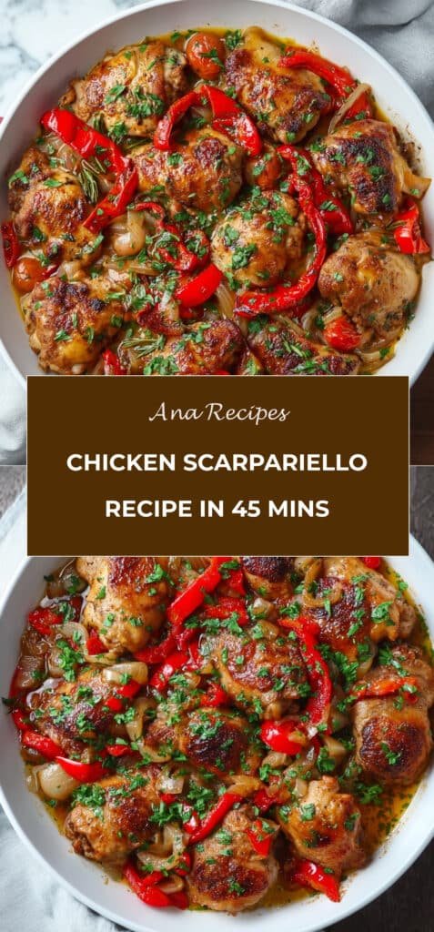 Chicken Scarpariello is a bold, comforting Italian-American classic that delivers big flavor in every bite. This one-pan dish features crispy, golden chicken thighs, savory Italian sausage, sweet bell peppers, and tangy cherry peppers all simmered in a rich white wine and vinegar sauce. The result is a perfect balance of spicy, savory, and slightly sweet flavors that feel both rustic and restaurant-worthy. It’s the kind of meal you make when you want something hearty, impressive, and deeply satisfying—ready in under an hour.