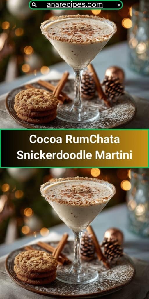 A creamy, spiced Cocoa RumChata Snickerdoodle Martini featuring cinnamon, nutmeg, chocolate notes, and a smooth dessert-like finish — perfect for cozy winter nights and festive holiday gatherings.