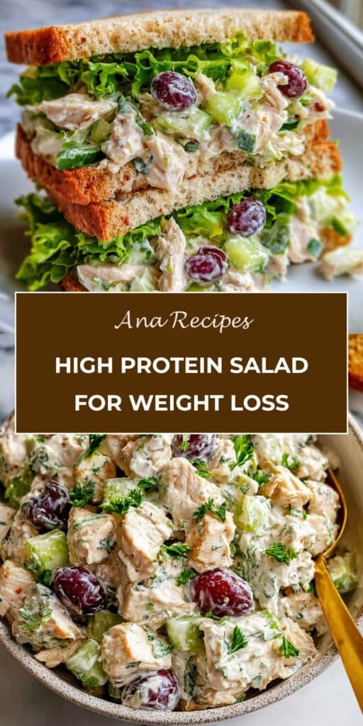 This high protein chicken salad for weight loss is creamy, fresh, and satisfying without feeling heavy. Made with lean chicken, crunchy vegetables, sweet grapes, and a tangy Greek yogurt dressing, it is perfect for easy meal prep lunches that keep you full and on track.