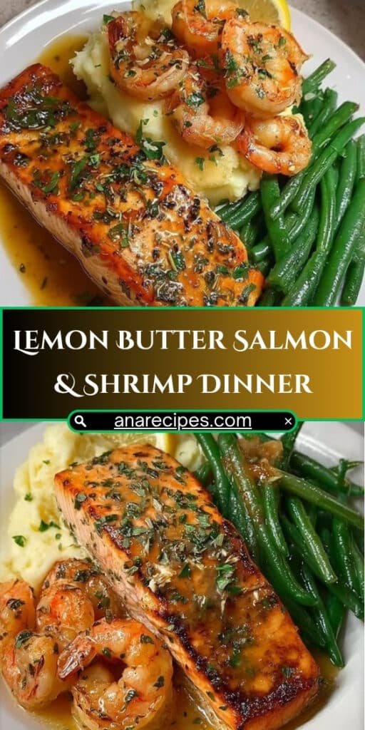 Lemon Butter Salmon & Shrimp with Garlic Mashed Potatoes and Sautéed Green Beans is a complete, elevated meal that balances richness, freshness, and comfort. Each component contributes something essential: the seafood offers brightness and depth from the lemon butter, the mashed potatoes deliver creamy warmth, and the green beans introduce satisfying texture. This combination creates a harmonious plate that feels luxurious without requiring complicated techniques.