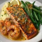 A complete, restaurant-quality meal featuring lemon butter salmon, juicy shrimp, creamy garlic mashed potatoes, and sautéed green beans. Bright, rich, and incredibly satisfying.