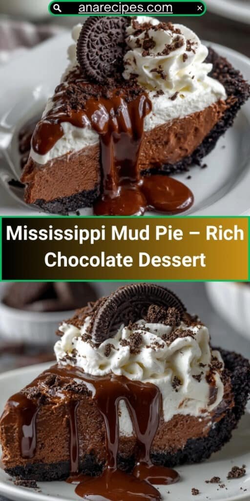 A rich, indulgent Mississippi Mud Pie featuring an Oreo cookie crust, silky chocolate filling, and a luscious ganache topping. Perfect for chocolate lovers and special occasions.