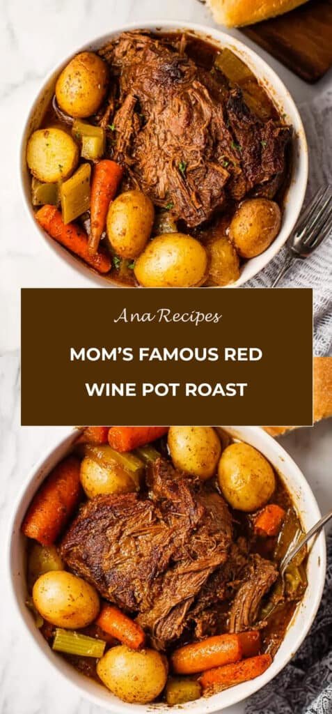 This Mom’s Famous Red Wine Pot Roast is a rich, slow-braised chuck roast cooked in red wine with carrots, celery, and potatoes until melt-in-your-mouth tender. A classic comfort dish full of deep, savory flavor.