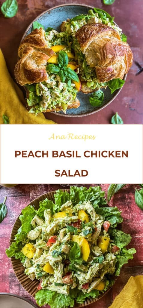 Peach Basil Chicken Salad is a refreshing, sweet and savory salad made with tender chicken, juicy peaches, fresh basil, and a creamy tangy dressing—perfect for summer meals.