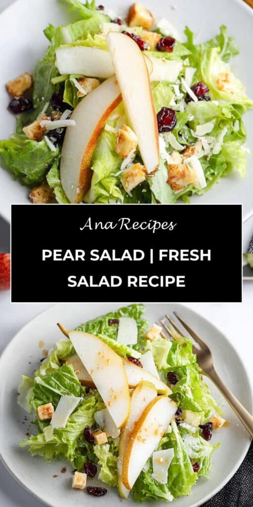This delicious pear salad is a refreshing winter green salad with pears, apples, dried cranberries, and crunchy toppings, finished with a creamy homemade poppy seed dressing. Perfect as a light lunch or easy side dish.