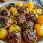 When you need a comforting, home-cooked meal with minimal effort, this Slow Cooker Garlic Butter Meatballs with Potatoes recipe will be your new go-to. Imagine tender, juicy meatballs simmering in a rich, silky garlic butter sauce, slowly infusing halved baby potatoes with incredible flavor. It’s the kind of cozy, satisfying dinner that feels like you’ve spent all day in the kitchen — even though your slow cooker did most of the work. Perfect for busy weeknights, family meals, or those evenings when you crave something warm, hearty, and irresistibly buttery.