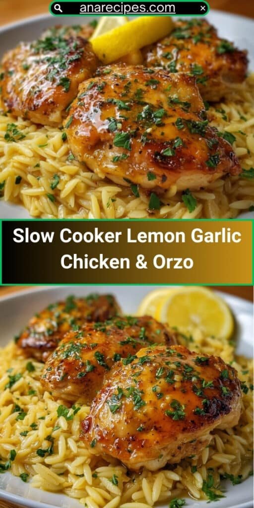 Slow Cooker Lemon Garlic Chicken & Orzo