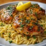 A flavorful and easy dish made with tender chicken breasts, zesty lemon, and orzo pasta cooked in a slow cooker.