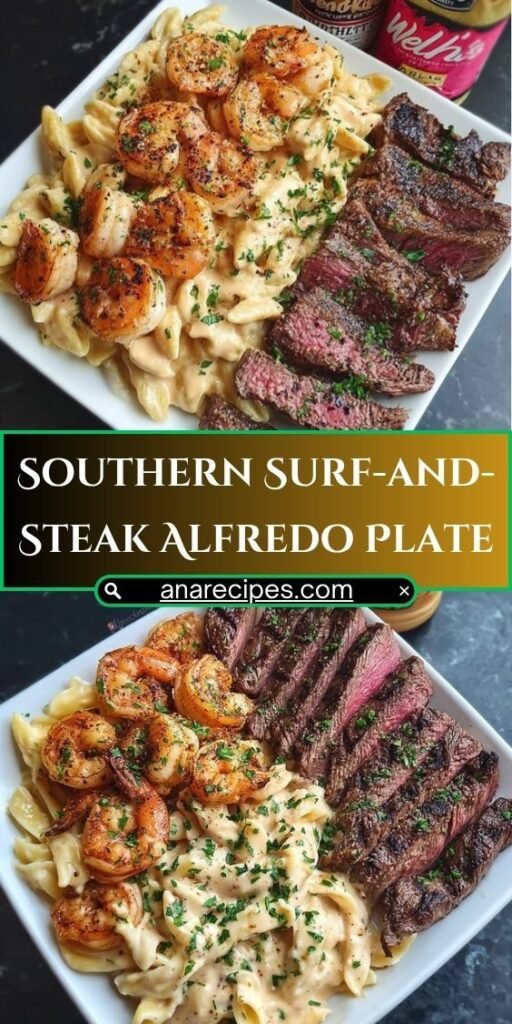 This Southern Surf-and-Steak Alfredo Plate brings the best of land and sea together: tender Cajun-seasoned sirloin, buttery garlic shrimp, and rich, creamy Alfredo pasta. It’s a comforting and indulgent dinner built for serious flavor lovers.