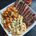 This Southern Surf-and-Steak Alfredo Plate brings the best of land and sea together: tender Cajun-seasoned sirloin, buttery garlic shrimp, and rich, creamy Alfredo pasta. It’s a comforting and indulgent dinner built for serious flavor lovers.