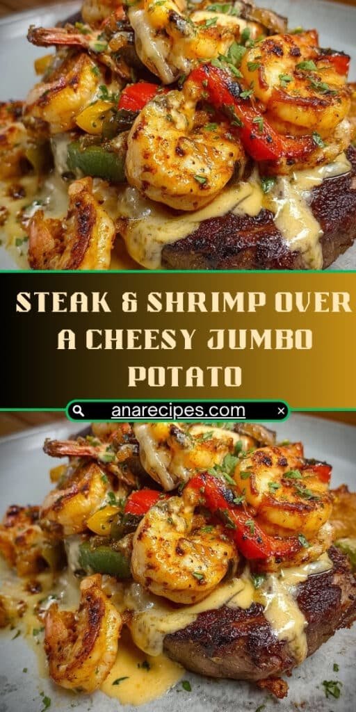 Steak & Shrimp over a Cheesy Jumbo Potato isn’t just a meal — it’s an experience. It combines the indulgence of a steakhouse dinner with the comfort of home cooking. The tender, juicy steak, spicy shrimp, and creamy, cheesy potatoes come together in perfect harmony, creating a dish that’s satisfying, beautiful, and bursting with flavor.