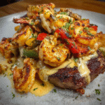 Steak & Shrimp over a Cheesy Jumbo Potato isn’t just a meal — it’s an experience. It combines the indulgence of a steakhouse dinner with the comfort of home cooking. The tender, juicy steak, spicy shrimp, and creamy, cheesy potatoes come together in perfect harmony, creating a dish that’s satisfying, beautiful, and bursting with flavor.