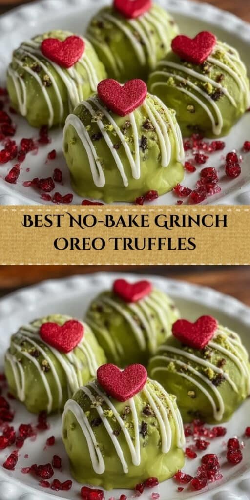 These No-Bake Grinch Oreo Truffles are a festive, fun way to brighten your holiday dessert spread. With their creamy centers, cheerful colors, and effortless prep, they’re a treat everyone—from kids to adults—will love. Give them a try this season and enjoy making sweet memories in the kitchen. If you whip up a batch, share them with friends and spread the holiday cheer!