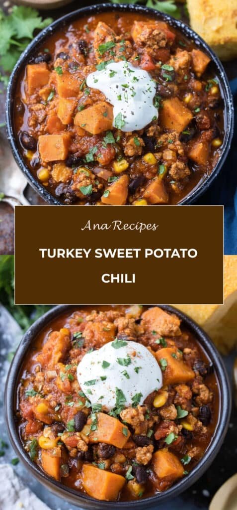 Hearty turkey sweet potato chili packed with lean ground turkey, sweet potatoes, beans, corn, and bold spices for a comforting and nutritious meal.